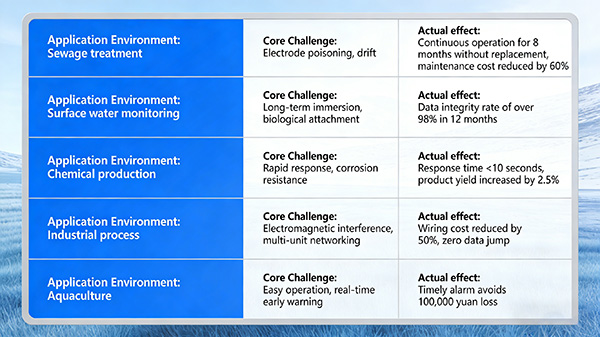 في الإنتاج الصناعي والرصد البيئي، يُشترط أن تعمل مستشعرات جهد الأكسدة والاختزال (ORP) في ظروف معقدة وصعبة. فمن مياه الصرف الصحي المسببة للتآكل والمسطحات المائية الطبيعية إلى أوعية التفاعل ذات درجات الحرارة العالية وورش العمل ذات التداخل الكهرومغناطيسي المكثف، يجب أن يثبت المستشعر الموثوق كفاءته في بيئات العالم الحقيقي.