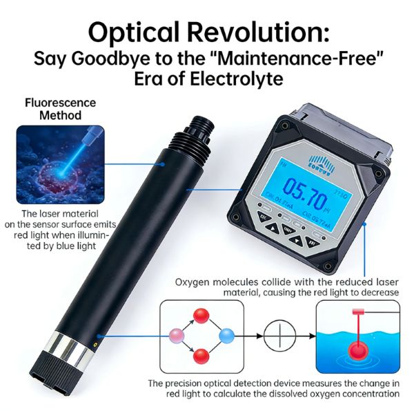 يُقدّم هذا المبدأ البصري مزايا ثورية: لا حاجة للتسخين المسبق، ولا للإلكتروليتات، ولا لمتطلبات معدل التدفق. بالمقارنة مع الأقطاب الكهربائية التقليدية التي تتطلب استبدال الغشاء بشكل متكرر وتجديد الإلكتروليتات (مما يقلل تكاليف الصيانة بنحو 50%)، فإن المستشعرات الفلورية لا تحتاج إلى صيانة تُذكر، بل ويمكنها العمل دون معايرة طوال فترة خدمتها.